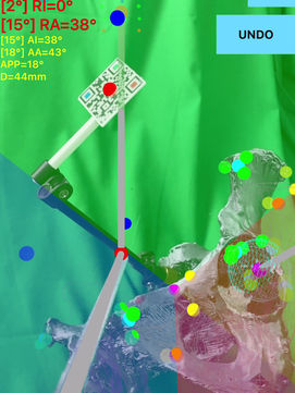 -by registering, with the tip of iPhone-Case-Probe instrument certain anatomical landmarks, to see in Augmented Reality all 3D planes with different transparent colours (sagittal-blue, coronal-red transverse-green),